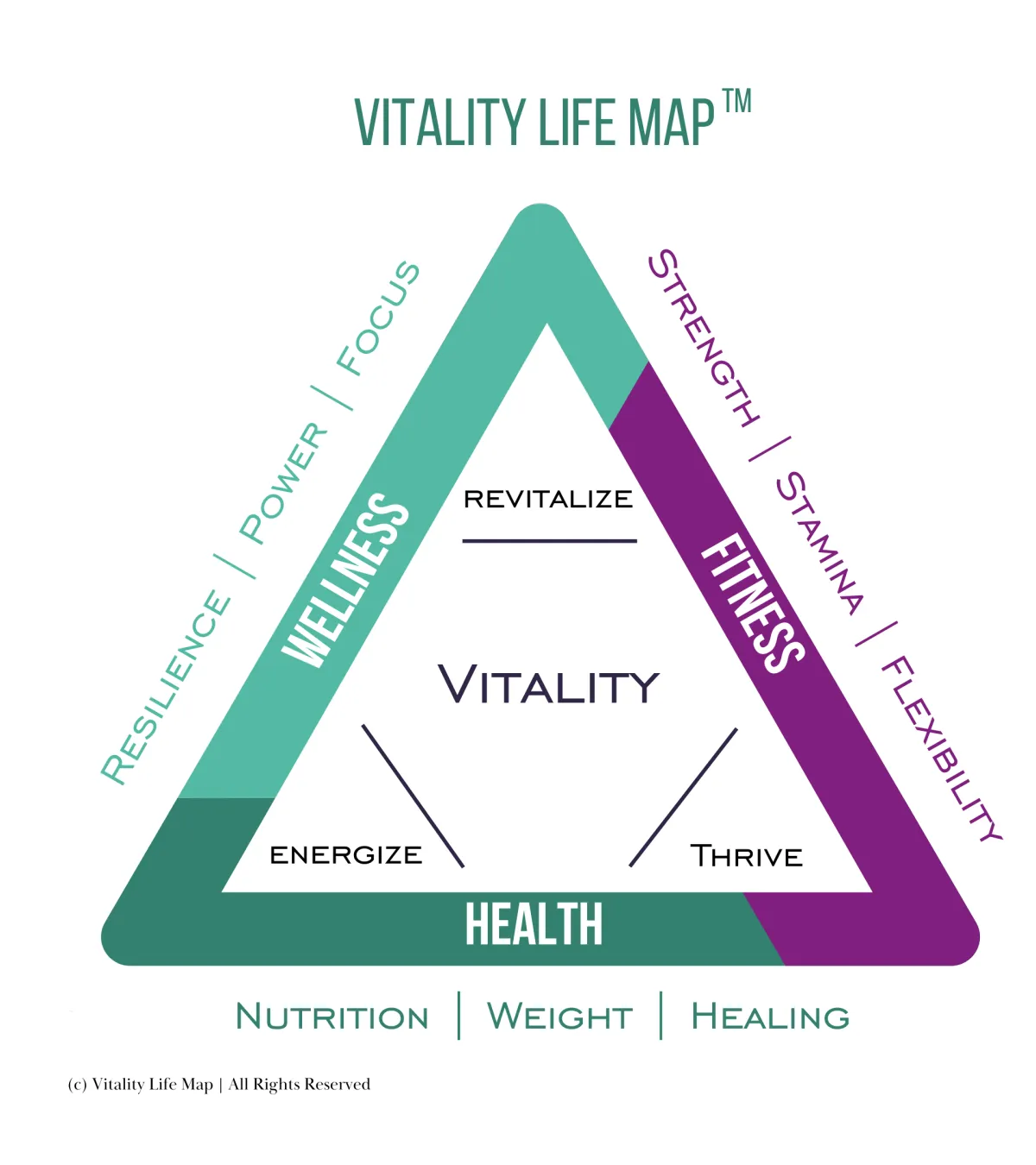 The Vitality Life Map™ integrates three essential pillars into one clear, supportive framework: